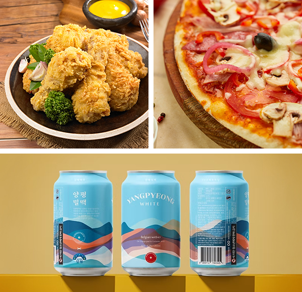 ① 치킨(후라이드 or 양념) & 피자(마르게리따 or 고르곤졸라)② 양평 밀맥 콤보세트 (양평 밀맥 3캔 + 치킨)